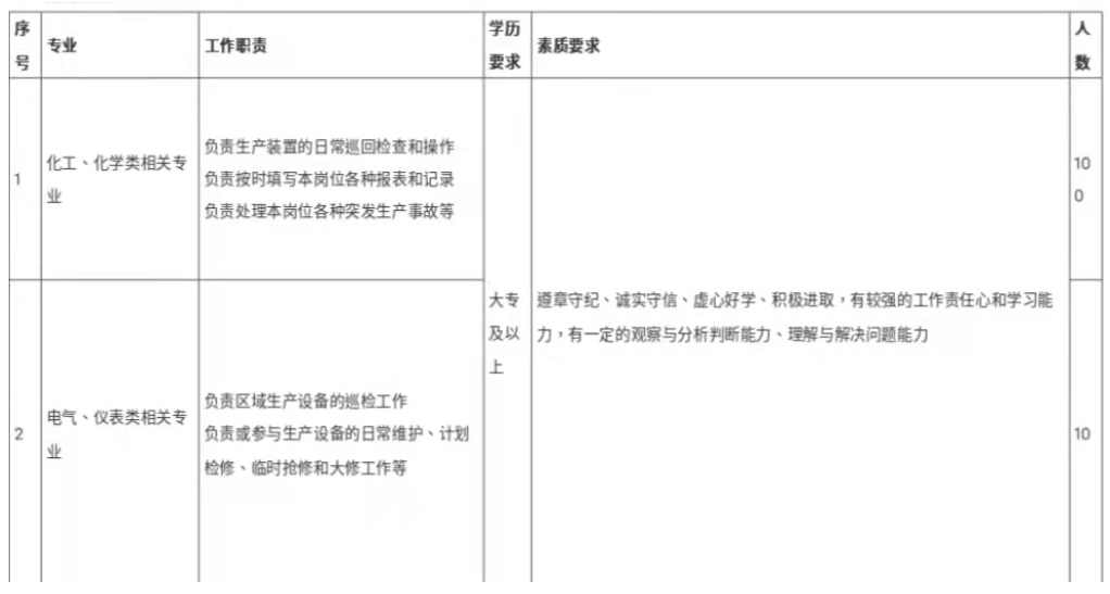(二)工作模式:四班兩倒,部分電氣/儀表專業(yè)為常白班。