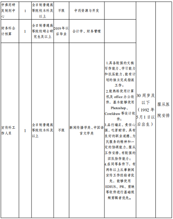 為進一步加強人才隊伍建設,促進醫(yī)院科學發(fā)展,根據我院業(yè)務發(fā)展需要,計劃招聘以下崗位人員。