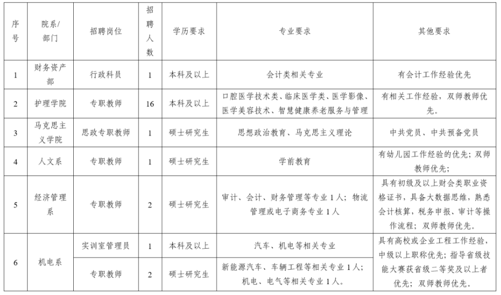 (2)所需專業(yè)為:學(xué)前教育、教育學(xué)等教育類專業(yè);計(jì)算機(jī)、人工智能、汽修、信息管理等機(jī)電類專業(yè);土木工程、建筑工程等工程類專業(yè);旅游管理、烹飪與營養(yǎng)等專業(yè)或相近專業(yè)教育背景;
