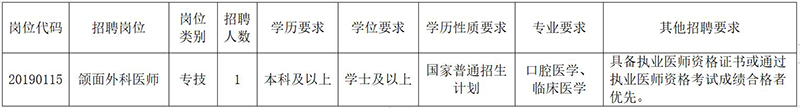 因工作需要,經(jīng)醫(yī)院研究同意在大理大學(xué)第一附屬醫(yī)院2019年公開(kāi)招聘(第二批)編制外工作人員崗位計(jì)劃中增加“頜面外科醫(yī)師”崗位計(jì)劃1名,現(xiàn)補(bǔ)發(fā)公告,具體招聘崗位及條件如下: