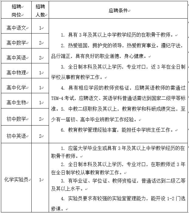 注:男教師年齡在40歲以下,女教師年齡在35歲以下。滿足以下條件之一并取得相關(guān)證件者,年齡可適當放寬,同等條件下予以優(yōu)先考慮。