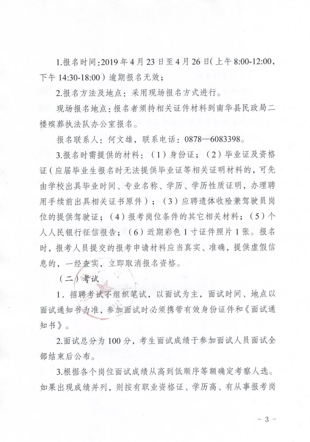 南華縣殯儀館2019年公開招聘編外工作人員公告