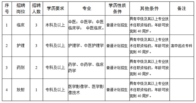 詳見附件1《曲靖市馬龍區(qū)中醫(yī)醫(yī)院2019年公開招聘編外聘用人員計劃表》。