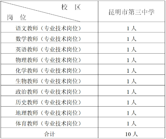 為進(jìn)一步滿足人民群眾享受優(yōu)質(zhì)教育的需要,昆明市第三中學(xué)教育集團(tuán)下屬昆明市第三中學(xué)校本部特向省內(nèi)外招聘能勝任優(yōu)質(zhì)名牌學(xué)校教育教學(xué)工作的,2021屆教育部直屬師范大學(xué)公費(fèi)師范畢業(yè)生,招聘人員均可享有事業(yè)單位編制。我,F(xiàn)已完成第一批次招聘,現(xiàn)將第二批次招聘相關(guān)事宜公告如下: